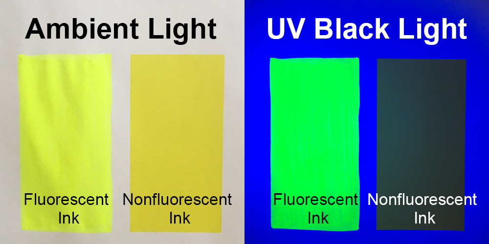 Okrem toho, bez akéhokoľvek viditeľného okolitého svetla v zatemnenej kontrolnej kabíne naše oči zachytávajú viac odrazeného svetla z fluorescenčného farbiva, ako keby bolo prítomné iné viditeľné biele svetlo.