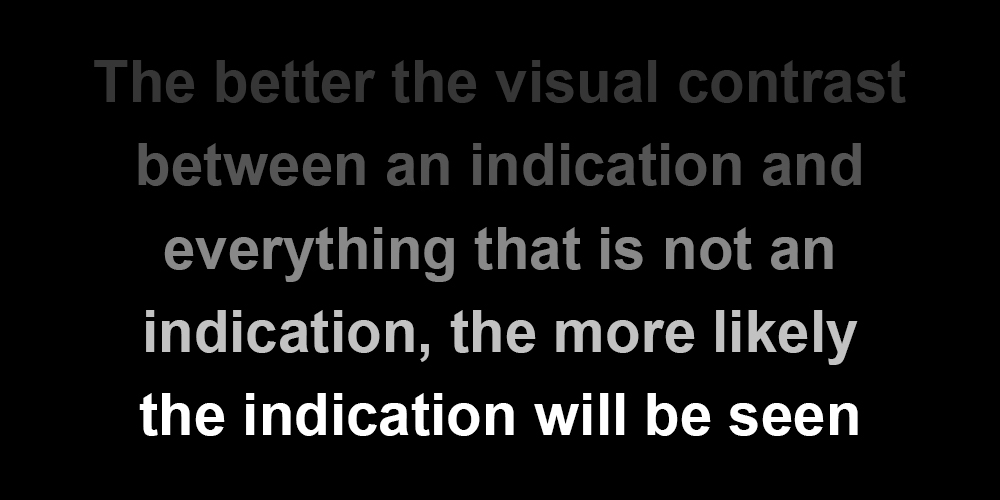 Čím vyšší je kontrast medzi indikáciou a pozadím, tým je pravdepodobnejšie, že kontrolór indikáciu uvidí.