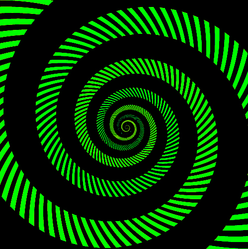 Dve zelené špirály začínajú vyzerať, ako keby sa až tak nelíšili. Stále vidím dva odlišné odtiene zelenej, ale tyrkysová špirála mi na tomto obrázku pripadá viac zelená.