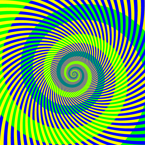 Vidím špirálu jasne žltozelenej farby a špirálu tyrkysovo zelenej farby, ktoré pretínajú žlté a modré lúče. Je zrejmé, že ide o dva veľmi odlišné odtiene zelenej farby.