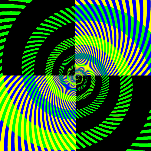 Ale mýlim sa... Je tu len jeden odtieň zelenej farby. Jasne žltozelená špirála a tyrkysovo zelená špirála majú presne rovnakú farbu.